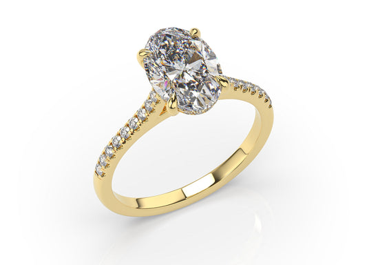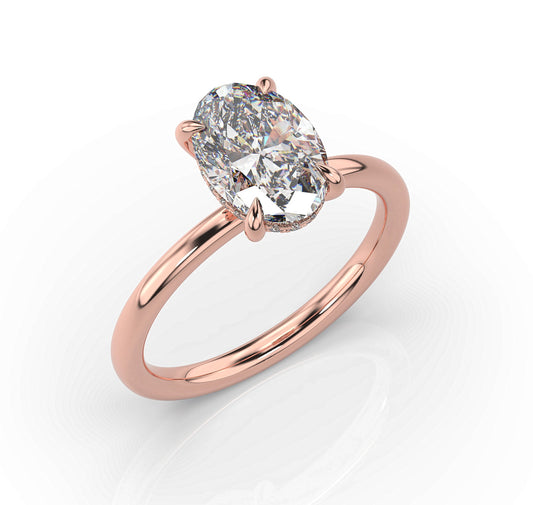Oval Low Hidden Halo Solitaire Engagement Ring