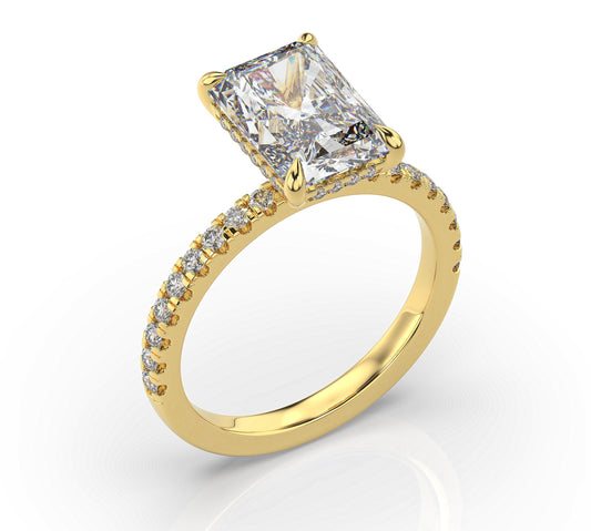 Asscher Low Hidden Halo Solitaire Engagement Ring