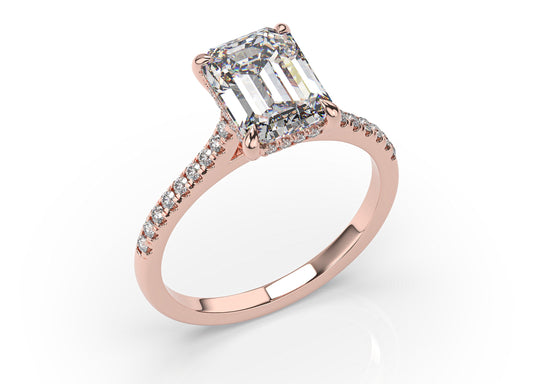 Emerald Low Hidden Halo Solitaire Engagement Ring