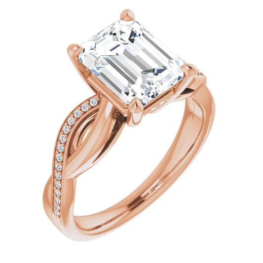 Asscher Solitaire & Hidden Diamond Band Engagement Ring
