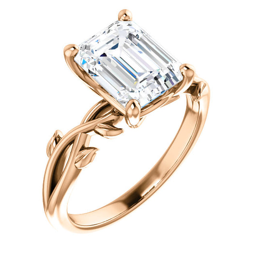 Round Brilliant Solitaire Leaf Design Engagement Ring