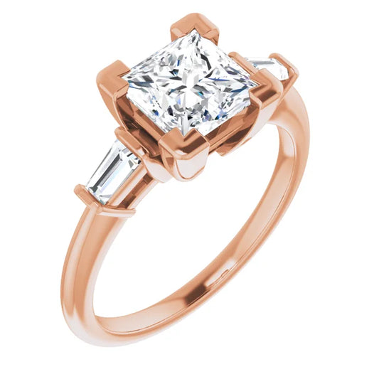 Princess Tri -Stone Style Pear Accent Engagement Ring