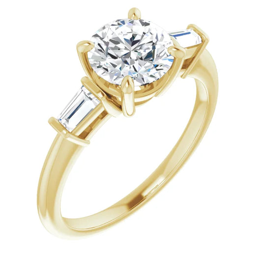 Round Brilliant Tri -Stone Style Pear Accent Engagement Ring