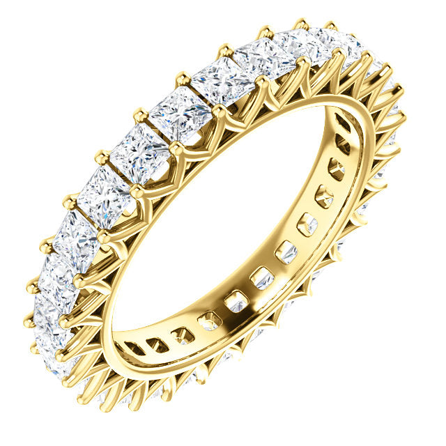 Made in your choice of 18K White, Yellow or Rose Gold this stunning band comes with approx 19 - 23 x 0.15ct Princess Cut Moissanites ( Depending on Ring Size ) in no less than a DEF Colour and a VS+ Clarity.