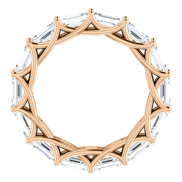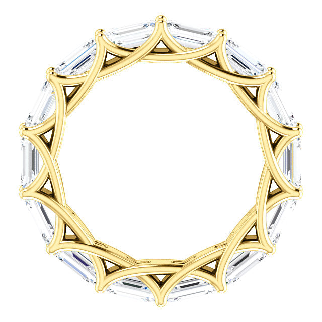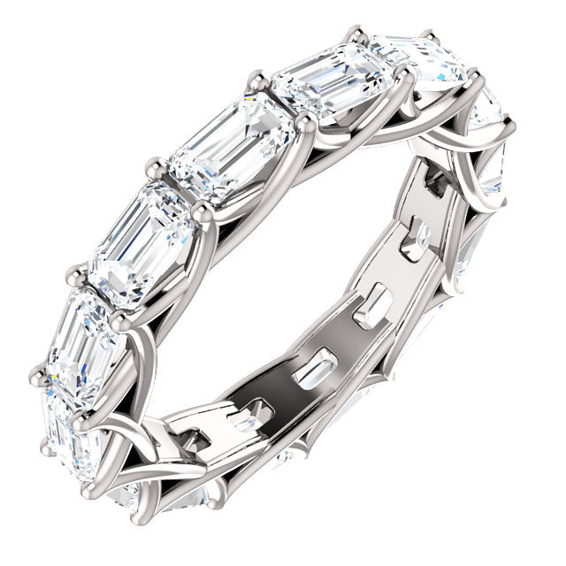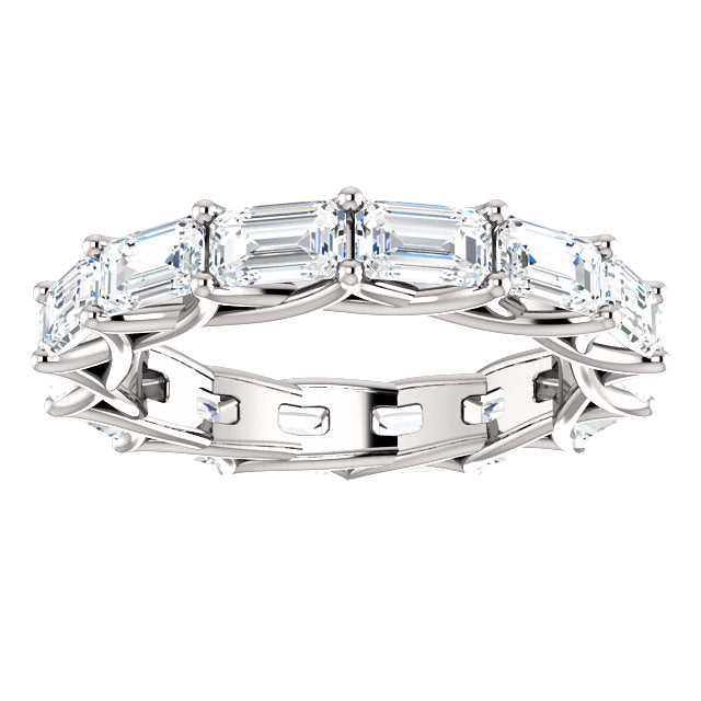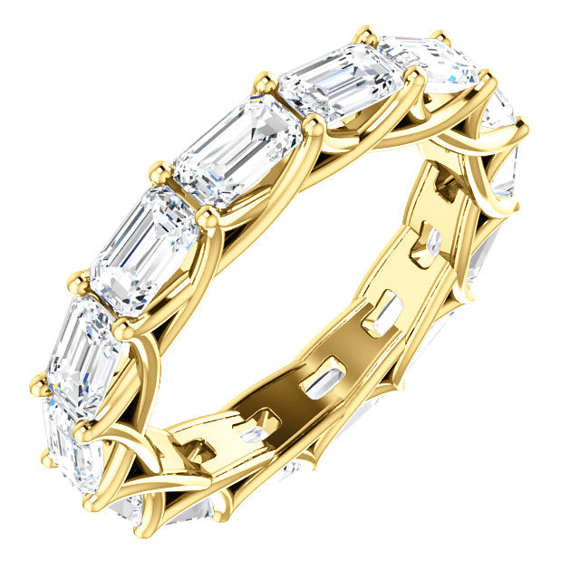 Made in your choice of 18K White, Yellow or Rose Gold this stunning band comes with approx 12 - 14 x Emerald Cut Moissanites ( Depending on Ring Size ) in no less than a DEF Colour and a VS+ Clarity.