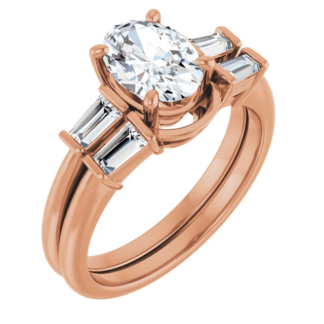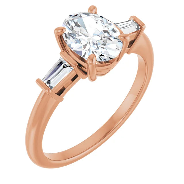 Made in your choice of 18K White, Yellow or Rose Gold this stunning Engagement Ring comes with 2 x Tapered Baguette Moissanites in no less than a DEF Colour and a VS+ Clarity.