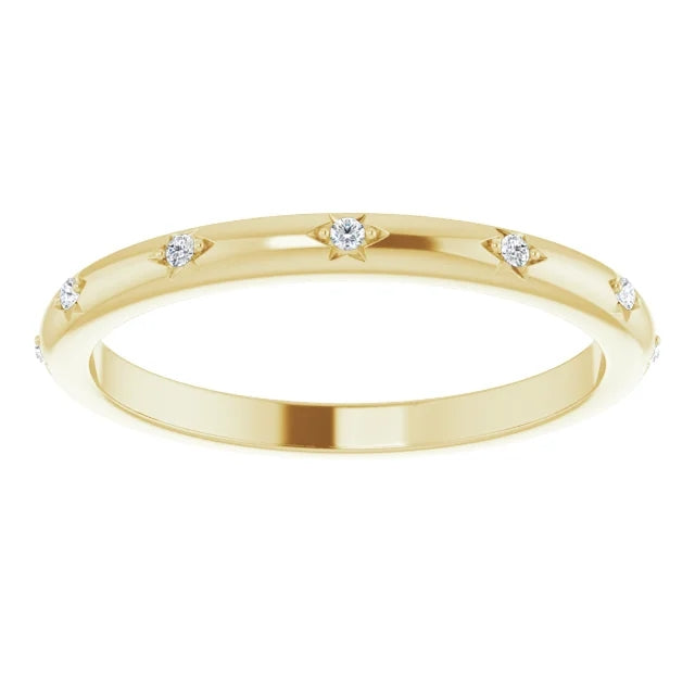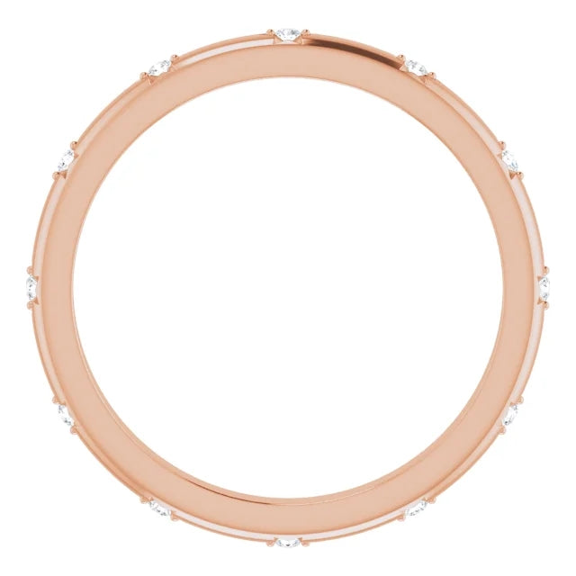 Made in your choice of 18K White, Yellow or Rose Gold this stunning band comes with approx 12 - 13 x Round Brilliant Moissanites ( Depending on Ring Size ) in no less than a DEF Colour and a VS+ Clarity.